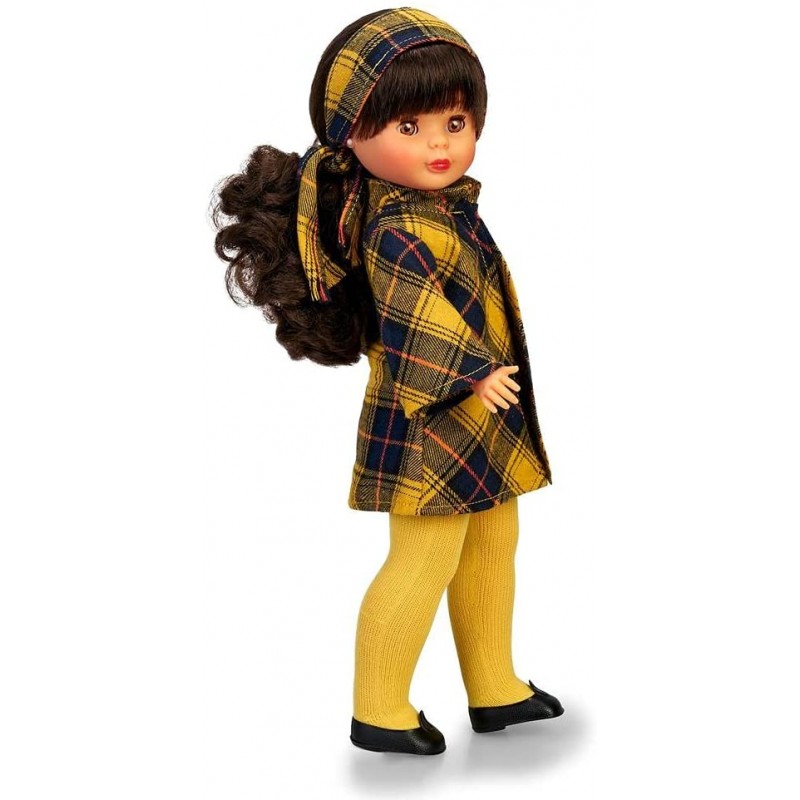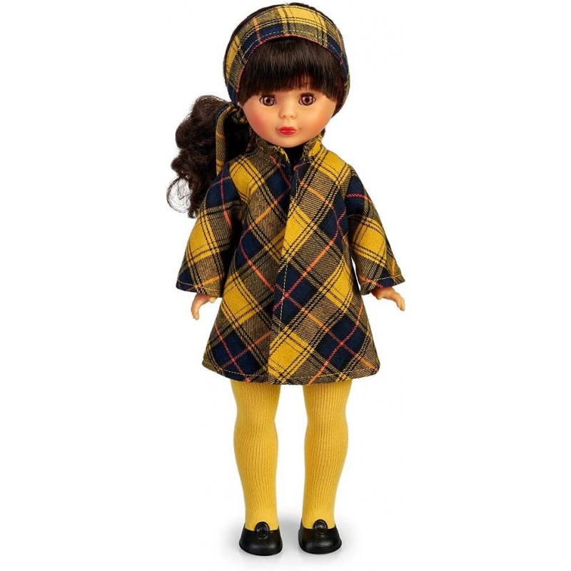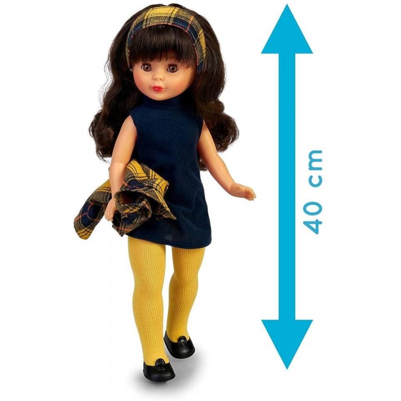Nancy Colección - En la Ciudad, Reedición 2021 del Conjunto de Ropa Original de 1973 Negro y Amarillo, en una muñeca clásica, Morena y con Flequillo, para niños y coleccionistas, Famosa,