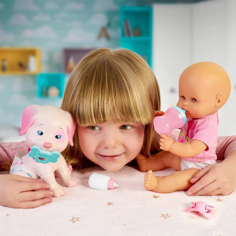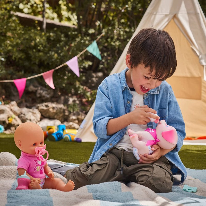 El juego perfecto de imitación para que los niños aprendan todo sobre el cuidado de los bebés y a tratar respetuosamente y con cariño a los animalitos.