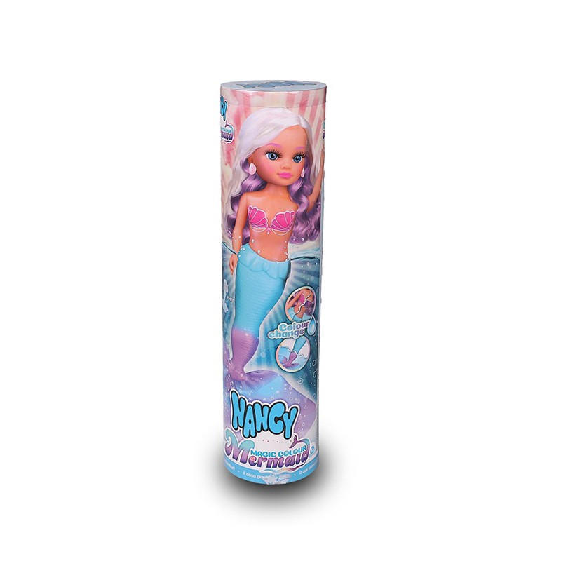 Nancy - Coral Muñeca 100% Sirena, Cola de Sirena Acabada en Tela de Múltiples Colores, a Juego con su Melena Larga Multicolor, Desde 3 Años, Famosa