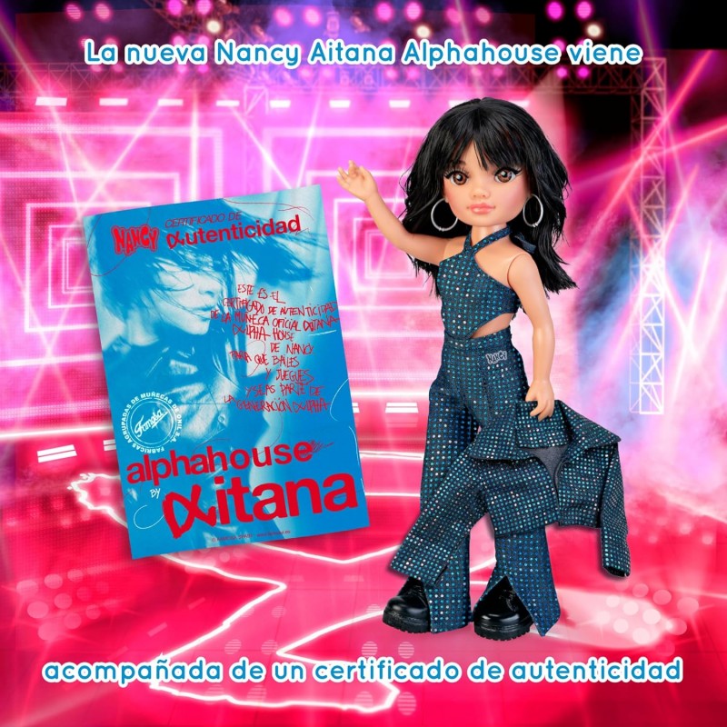 La Nancy Aitana Alphahouse es una muñeca exclusiva inspirada en la famosa cantante Aitana, con un diseño creado por el reconocido diseñador JC Pajares, lo que la convierte en una pieza única para los fanáticos y coleccionistas.