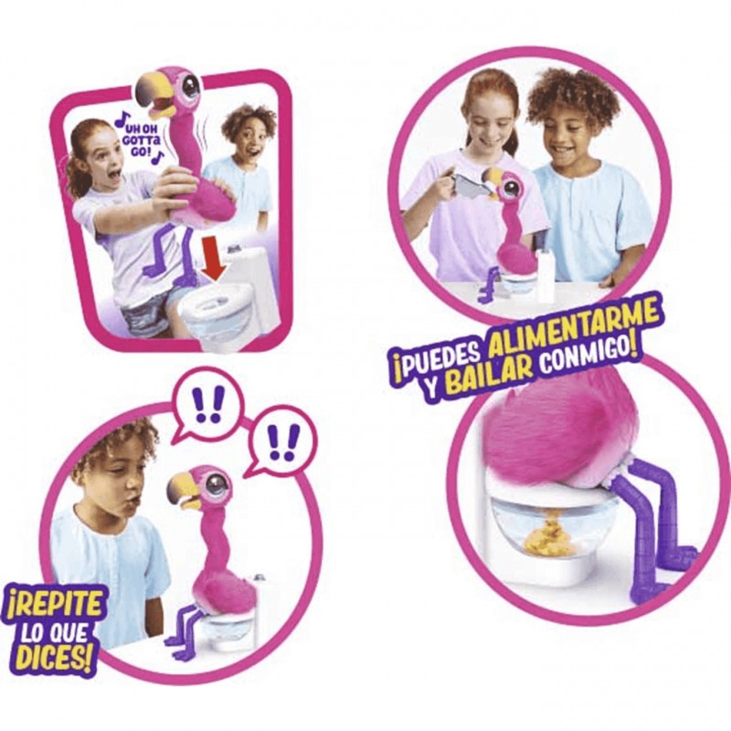 El Flamingo The Poop de Little Live Pets es un juguete interactivo lleno de diversión. Este flamenco puede repetir lo que dices, mover su cuello, y tiene una divertida función de ´hacer caca´ con arena de color neón. La arena es reutilizable, lo que permite a los niños jugar varias veces. El set también incluye accesorios para alimentar al flamenco y disfrutar de una experiencia de juego completa.