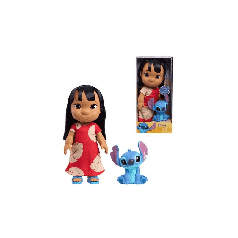 La muñeca Lilo es articulada en hombros, cuello y piernas, lo que permite posar y recrear escenas divertidas. Con detalles fieles al personaje: vestido con estampado tropical y accesorios auténticos. Stitch, siempre listo para la travesura, aporta simpatía y dinamismo al set.