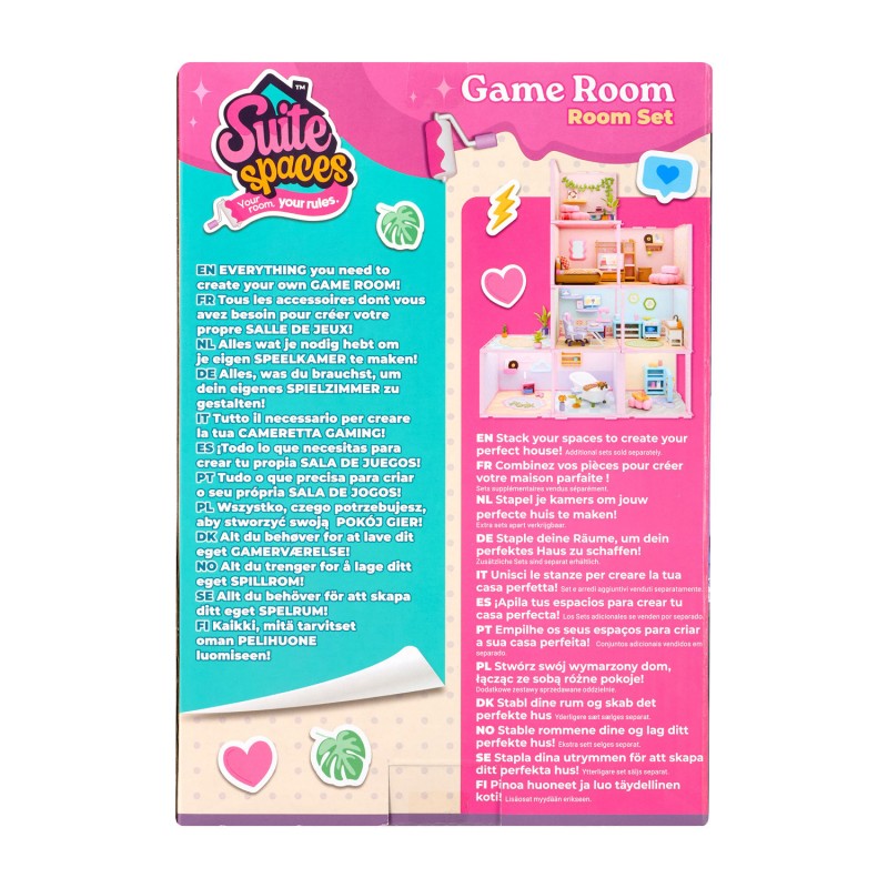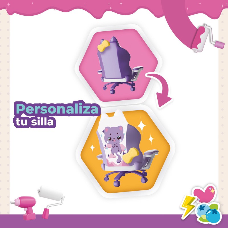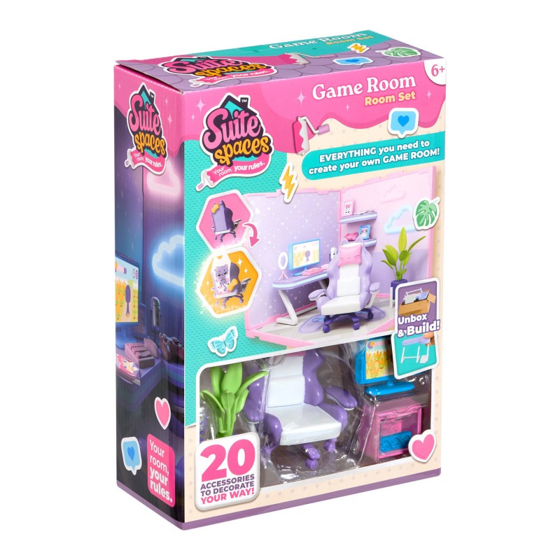 ¡Luces, color y mucha actitud! Con Suite Spaces Sala Gamer montarás tu propio setup con aro de selfie, cómics que brillan en la oscuridad y muebles para organizar todo. ¡Perfecta para tus momentos de juego, creación y diversión!