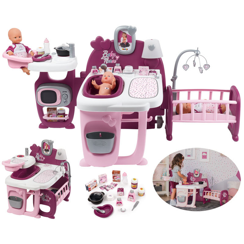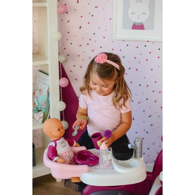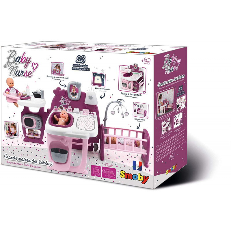 La gran casa de los bebés ofrece a tu hijo un gran espacio para jugar a la mamá; tu hijo podrá cuidar de su muñeca durante largas horas de juego gracias a las 3 piezas diferentes dedicadas al bienestar de su pequeño: cocina, baño y dormitorio