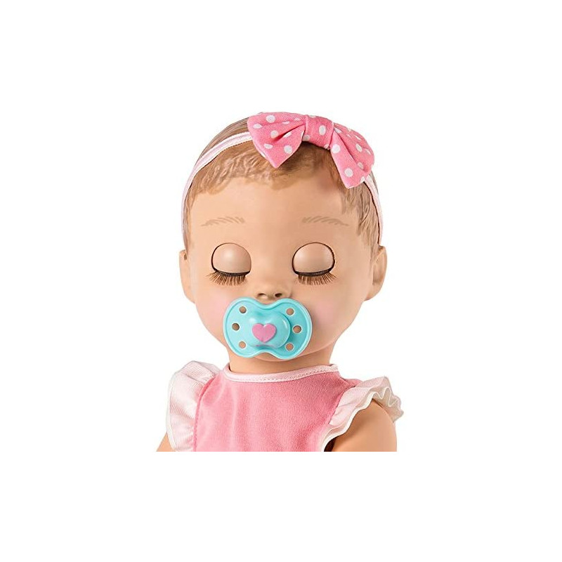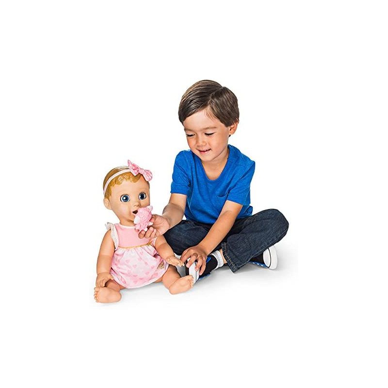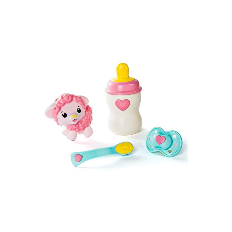 Juega con Luvabella y todos los accesorios interactivos incluidos: la cucharilla, el biberón, el chupete y su ovejita de juguete Lamby