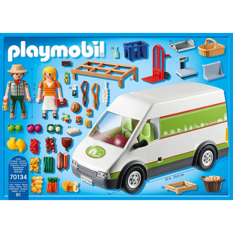 Contenido: 1 PLAYMOBIL Country Mercado Móvil, Juego de 91 piezas con instrucciones: 1 Mercado Móvil, 2 figuras, 88 accesorios, Material: plástico, LxPxA: 27 x 13 x 13 cm, 70134